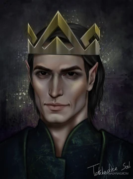 O rei tinha cabelos pretos na altura dos ombros, a pele áspera, uma altura surpreendentemente mediana, mas musculoso como um jovem, e o rosto parecia o de um homem humano na faixa dos 40 anos, mas imperturbavelmente bonito. Ele usava roupas que pendiam mais para o lado prático que o elegante.